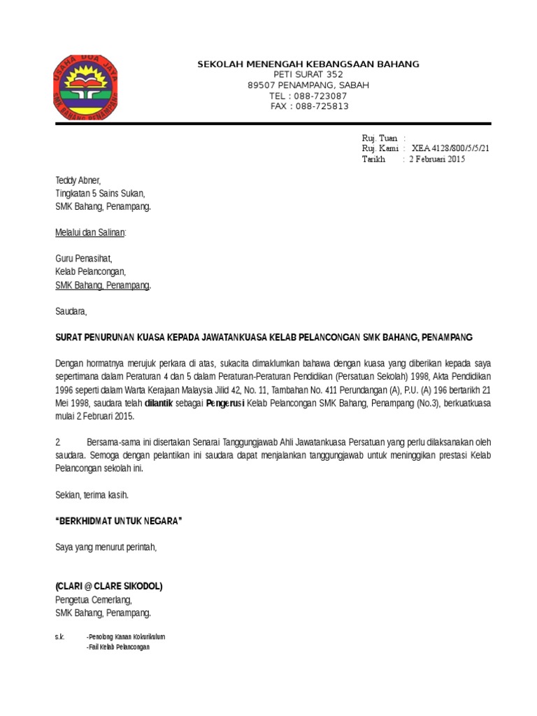 Surat Turun Kuasa Spbt. Lampiran 11 contoh surat penurunan kuasa pengetua Yatimah Salleh. Maybe you would like to learn more about one of these.